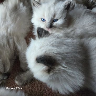 Why a ragdoll? One they are the Pedigree must of the cat world!! And the absolute best cats out there! They follow you like dogs they are highly trainable. They by far live up to their name..I will have to say they are alot like the old lays potatoe chip commercial "You Can't Just Have One!" Well I couldn't ..so now I enjoy and love on your babies till you come and adopted them!